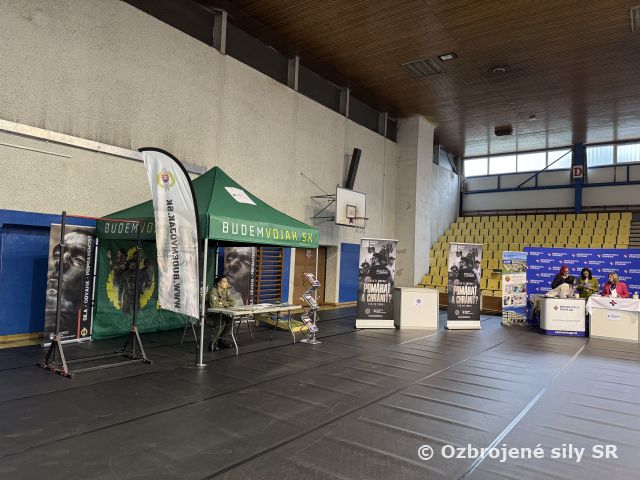 Karieraton v Spišskej Novej Vsi Príslušníci Regrutačnej skupiny Košice boli dňa 23. októbra 2025 účastníkmi na podujatí Karieraton. Podujatie hosťovalo okrem zamestnávateľov civilného sektoru aj Políciu SR a Hasičský a záchranný zbor. Cieľom bolo poskytnúť návštevníkom, prevažne mladým ľuďom – študentom, informácie o možnosti zamestnania v danom regióne. Na moderovanej panelovej diskusii sa občania prostredníctvom kapitána Mariána Bačíka, náčelníka Regrutačnej skupiny Žilina, dozvedeli informácie o možnosti služby v Ozbrojených silách SR, o štúdiu na Akadémii Ozbrojených síl SR, ale aj o Národných obranných silách. Pri stánku Regrutačnej skupiny Košice si zase odvážlivci mohli vyskúšať fyzickú zdatnosť na hrazde alebo šikovnosť na cornhole.